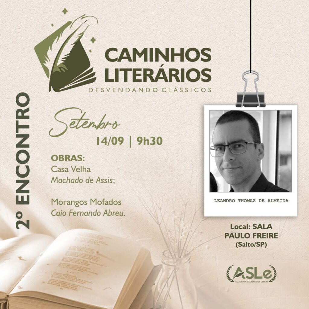A Academia Saltense de Letras, a ASLe, retoma no sábado (14) o projeto “Caminhos Literários – Desvendando Clássicos”, voltado para alunos do ensino médio que vão prestar o vestibular. A partir de 9h30, na Sala Paulo Freire do Centro de Educação e Cultura, o professor Leandro Thomaz de Almeida, que também é acadêmico, Cadeira 33, […]