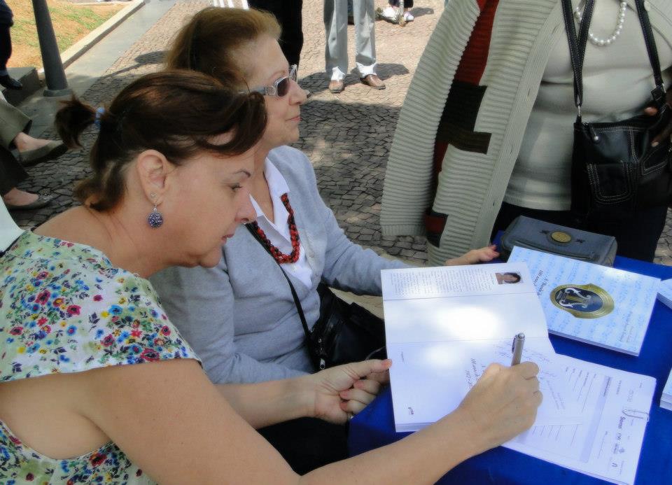 Fotos: Na primeira foto em um encontro com amigas, na segunda autografando o livro sobre a Banda de Itu e na última em uma visita técnica ao Museu da Chapelaria, em São João da Madeira, Portugal