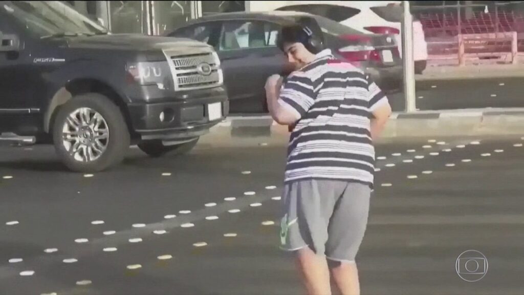 Ao vê-lo, Monique desceu e foi em sua direção para dissuadi-lo de continuar aquela cena. Ele a empurrou e seguiu.