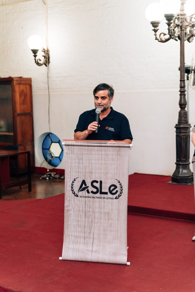 O professor e assessor de Gabinete da reitoria do Ceunsp, Gilmar Cardoso, representou o reitor Marcel Fernando Cardozo, que não pode comparecer devido uma visita de técnicos do Ministério da Educação para avaliação dos cursos oferecidos pela instituição. Após a abertura oficial pela presidente da Academia Saltense de Letras e pelo representante da reitoria, o acadêmico Marco Ribeiro, Cadeira 1, patrono Ettore Liberalesso, falou sobre a importância do historiador para a Academia e para a cidade.