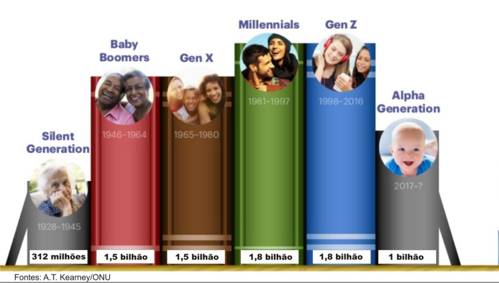 É preciso atentar, no entanto, para algumas características sobre o perfil demográfico mundial; a ONU estima que em 2026 a população do planeta chegará a 7,8 bilhões de pessoas, distribuídas em seis gerações concomitantes, sendo os nativos digitais apenas 35,7% dela.